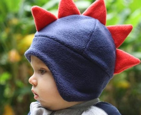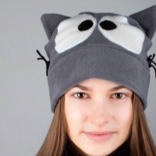 Numerous children's products are also successfully made from fleece. These are mischievous models in an animalistic style that imitate not only animals, but also fairy dragons, cartoon monsters. These hats are decorated with ears, horns, and a contrasting comb.