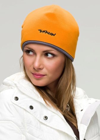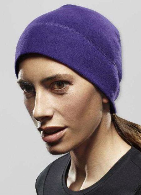 Fleece hats, especially sports models, are presented in rich colors: in addition to the usual shades (black, white, gray, red, green, blue, olive), lovers of bright images can choose acidic products - bright orange, light green, lemon, ultramarine, fuchsia color. Melange options always look gently and unobtrusively.