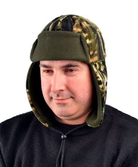 Another popular men's version of fleece - windproof cap with extra ear protectorswhich you can optionally wrap back and lock in this position. Such products are presented in the autumn and winter warmed version.
