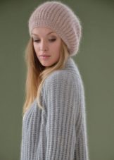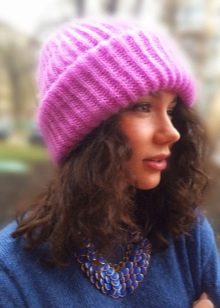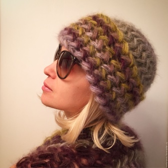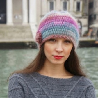 Mohair caps have a beautiful view. Due to the softness of the yarn, the product does not leave marks on the forehead and, accordingly, does not irritate the scalp. Designers have proposed volumetric hats made of mohair, which are perfect for women of fashion of different ages. It is worth noting that mohair hats were in great demand in the 70s of the last century.