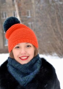 When choosing the color of hats, it is necessary that they are in harmony with the color of outerwear. Currently, the knitted product belongs to full-fledged accessories, such as, for example, a bag. Therefore, there is a condition for the cap: the product must stand out in the image.