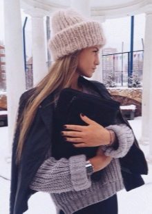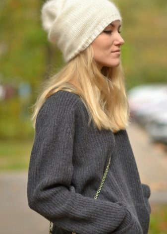Gray yarn hats also spilled into a separate trend. A special chic is considered to be a product made large and wide viscous, slightly voluminous.