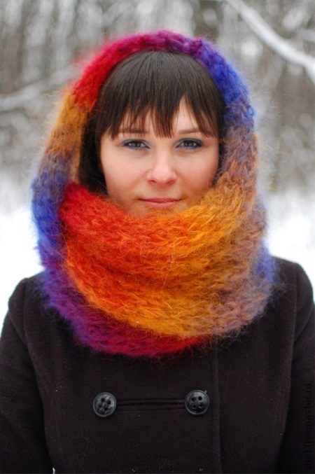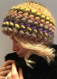A hat knitted from threads of different colors looks very impressive.