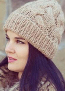 There are many models of headdress: made in large viscous, decorated with knitted flowers, made using the "braid" technique. A hat with lapels looks very elegant. This model is suitable for women of mature age. Perfect with a classic coat or sheepskin coat. Such a hat can have several lapels: one, two or three. In any case, this is an excellent protection against ear blowing.