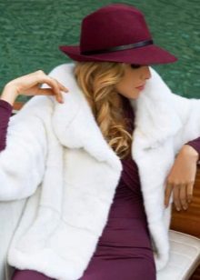 Both bright and pastel colors will be combined with a white fur coat. Coral red, soft pink ... Choose a color that suits your face. It will be ideal to pick up gloves and a handbag in tone.