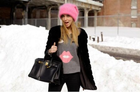 Universal caps are considered black and white. Or you can play in contrast - a pink coat and a gray hat - why not? There is an opinion that warm tones should be combined with warm, and cold with cold. But if you are ready for bold experiments, put on a blue coat with a bright pink hat or emerald green, especially if it suits the color of your eyes.