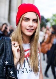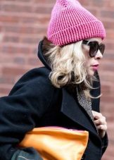 Hats are ideally combined with outerwear, which is darker by a couple of tones. For example, a pink hat fits perfectly with a red jacket, blue with a blue jacket.