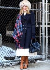 A stylish addition to the classic down jacket can be a fur hat with ear flaps. Keep in mind that long fur is more suitable for chubby ladies. A voluminous boyar cap is more harmoniously combined with warm jackets or a coat.