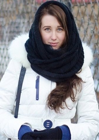 A scarf-clamp has an excellent property - the ability to transform into a headscarf, which is perfect for any winter coat.
