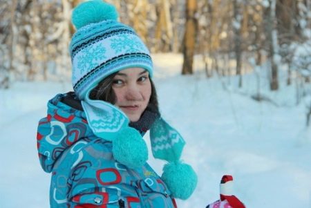 It is of great importance that the color of the cap fits the face, regardless of the color of the outerwear. Blonde girls can be preferred bright cold shades: green, turquoise, blue. Beige, brown and black colors are also good.