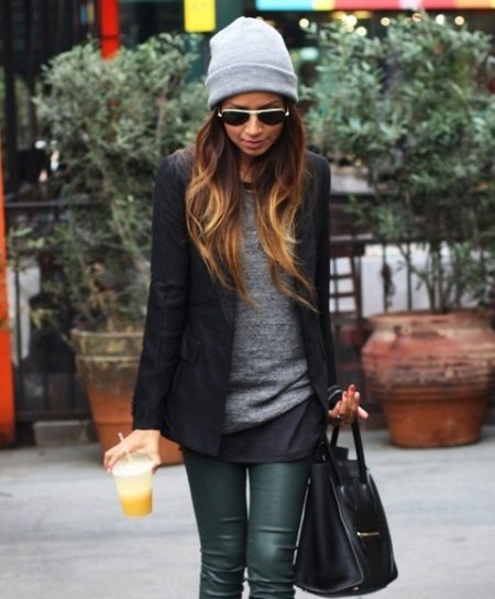 With black outerwear, you can wear both hats of the same black color, and contrast - white or beige.