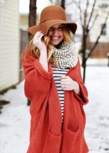 - If you prefer a knitted hat, wear it with your hair out. You should not hide them under a hat, beautifully if hair will flutter in the wind. If you wear a bang, you can let it out a little, it will turn out very beautifully.