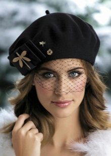 Beautifully berets with various decorative elements. It can be bows, felt flowers, satin ribbons, feather trim or a gracefully pricked veil.