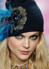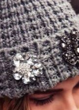 - Brooch - the most affordable that decorates the hat. Now in the accessories stores there is a huge number of different brooches for every taste. Attaching it to the hat, you get a beautiful and delicate bow.