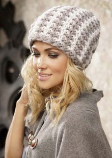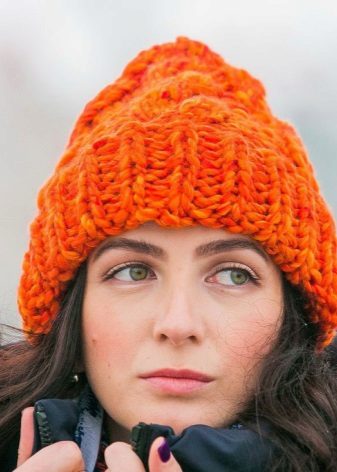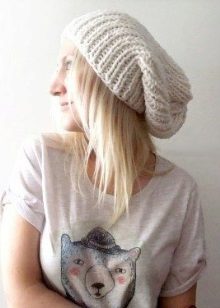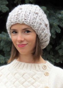 Among the most popular styles of large-knit hats, favorites are a cap, stocking and sock. There are no strict borders between them, they are very similar to each other.