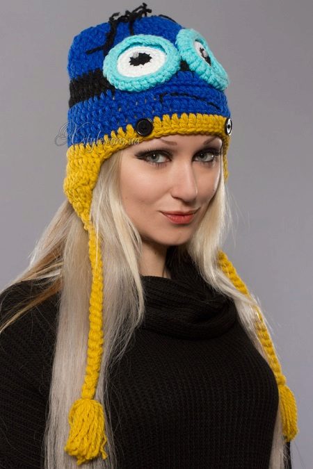 The coming winter dictates the rules: it's time to wear warm clothes. Fans of bright and positive colors are probably outraged by the abundance of gray and black shades of hats in the crowd. A feature of a headdress with minions is to make a smile on the face of a passer-by or interlocutor. They are knitted, sewn from a single piece or from flaps, leather and synthetic. Suitable for both adults and children.