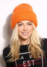 Knitted hats with a twist are in fashion. A volume cap knitted with English gum is a hit of the season. A double lapel will give the headdress volume and originality, it will turn out a hat in the style of takori. Moreover, such a model can be knitted independently on knitting needles (for example, from mohair, angora or cashmere) according to the principle of decreasing loops, the basis for it is a long stocking.
