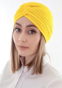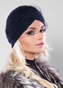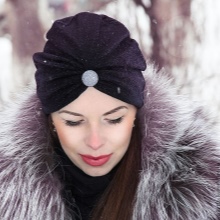 A turban or turban will not go unnoticed this season. Particularly attractive are such hats that look on girls or women with delicate facial features. A similar headpiece is also appreciated for the fact that it can be decorated with your favorite brooch. If desired, a turban can be built on the head yourself from a piece of cloth you like, and a turban can be easily sewn or knitted.