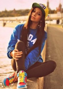 Hats then popular in the 80s of the last century, again returning to the people. If you put on such a hat, then from the side it will resemble a scallop of a rooster. A pompom or a brush on a string is often present on the cap, and the product itself is decorated with inscriptions on sports topics.