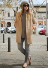 Beige color have long been recognized as classic on par with black. The beige coat has a unique ability to combine favorably with a variety of fashionable shades and prints. With a beige coat, coral, mint orange and black colors look spectacular. The noble combination of a light beige coat with dark chocolate accessories will create the image of a “dear” woman. For a beige coat, you can choose successful hats two or three tones darker or lighter than the tones of the coat.