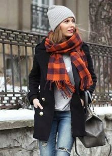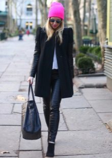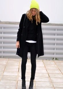 Universal black color coat gives his mistress a huge selection and a wide color palette of hats. For a black coat, you can purchase a hat of any light, pastel color. Juicy shades of red, orange, turquoise, blue, yellow or mustard are perfect.