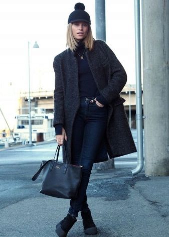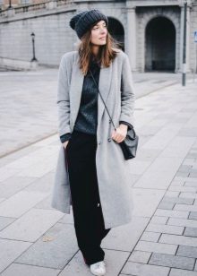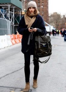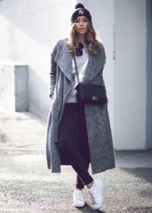 A hat - stocking (sock) will look great with an oversized coat. The advantages of this model is that due to the elongated shape, the cap can be stacked in different ways, while coming up with new images. Mischievous hats with pompons and fur hats with earflaps with ears tied back perfectly complement the oversized style.
