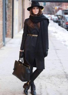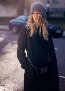 Black color itself is strict and it is advisable to dilute it with a bright color, unusual design and interesting texture. A black hat with a black coat can be worn safely by long-haired and fair-skinned blondes or girls with bright red long hair.