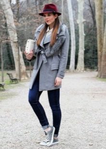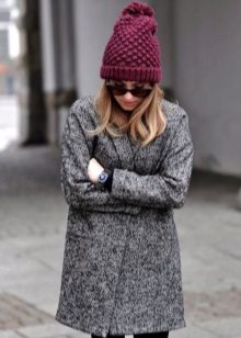Choosing a hat to a gray coat try to take into account the saturation of gray, the darker the shade, the brighter you can choose a hat. A hat of pale blue or pink is combined with a dark gray coat. Red, burgundy, cherry will give a gray coat an elegant look. A dark cherry hat with small brim stands out spectacularly against a light gray coat. The hat gives the expressiveness and color to cold gray with a blue image.