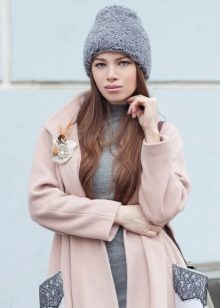 In addition to the color combination of the coat and headgear, it is recommended to pay attention to the texture of the material. If the coat is made of textured fabric, for example, a boucle, then when choosing a headdress you need to give preference to smooth models. Headgear made of similar materials and knitted hats with different decor are suitable for drape and cashmere.