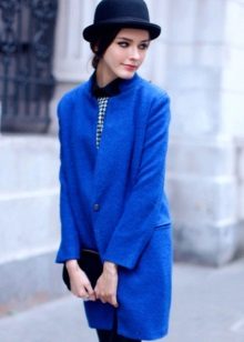 To the blue coat Different shades of beige, golden and brown, gray and silver will do. A bright blue coat looks great with a dark blue or black hat. With a dark blue coat, noble and white colors will look noble. Pale blue, delicate coral and different shades of pink give the image of romance.