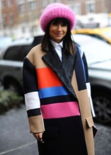 A stylish coat will be decorated with a stylish fur hat, it is even better if the hat is complemented by a fur collar or a boa made of the same fur. With a classic-style coat, you can safely wear a bright and original hat with an interesting and unusual finish, in which case the emphasis will be placed on the headgear.