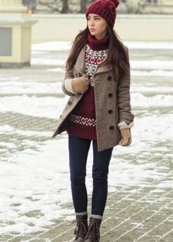 The classic image in clothes is relevant always and everywhere, and most importantly, will suit any woman. An elegant hat in combination with a classic cut coat will turn her mistress into a real lady. A classic coat will always look good with berets. This combination is suitable for young ladies and mature ladies.
