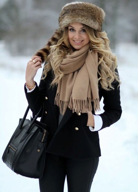 When choosing the color of the headgear, it is advisable to be guided by several general rules. It always harmonizes with the dark light or bright. A hat of the same color with a coat will merge with it and the costume will turn out to be inexpressive or vice versa too bright. It’s advisable to choose an accessory to the color of the cap, perhaps a bag, a scarf or gloves, but in moderation, two to three are enough.