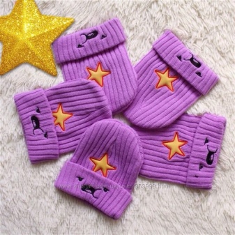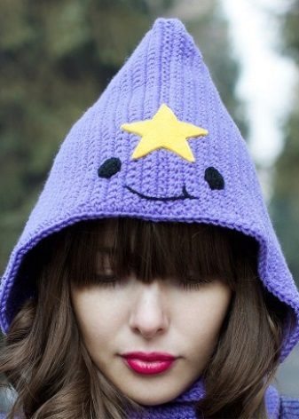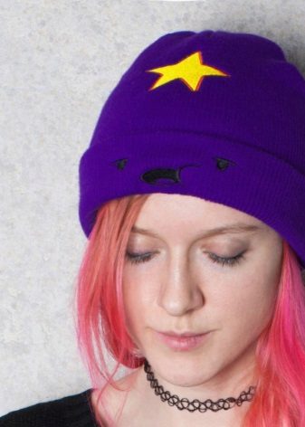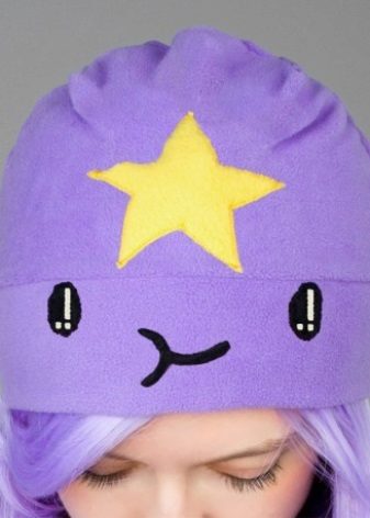 The cap in the form of a princess completely copies the appearance of the heroine. This is a bright purple accessory, with a yellow star and elements in the form of a muzzle on the lapel. For those who are familiar with the series, such a hat will not go unnoticed. After all, the image of the heroine in this headdress is impossible not to recognize. But those who are not familiar with the cartoon will not be able to indifferently react to the cap of the princess - it is so bright and unusual.