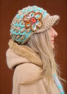 Another practical winter model is a cap with ear flaps with a visor. In this case, the ears can be on the valves, which is very convenient - they can be unfastened and fastened depending on the circumstances.