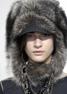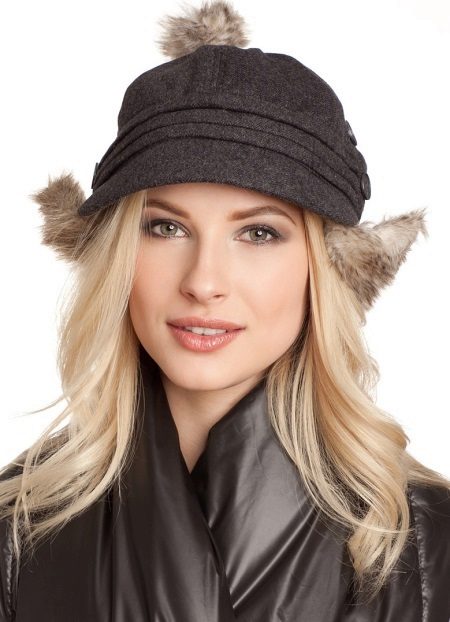 Extremely curious are models with ears that perfectly protect their owners from the autumn cold. Not so long ago, caps and baseball caps appeared, in which production actively use natural materials: fur and leather.