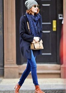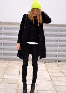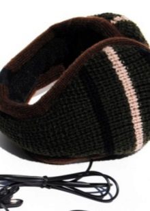 A knitted hat with headphones looks great in combination with a coat. The best solution would be fine textured knit models. Caps can be decorated with bright rhinestones, ribbons of saturated colors, beautiful beads or beads.
