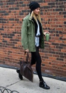 Young people often put on a hat with headphones in tandem with a scarf-snood, a capacious bag and gloves made of genuine leather. Bright, fresh and very fashionable.