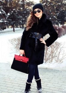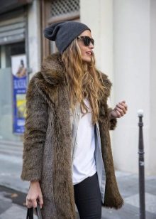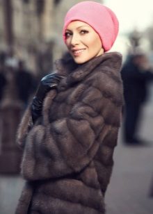 Many designers suggest wearing hats with headphones, even with fur coats. Such a tandem will definitely draw attention to an irresistible and spectacular bow. In this outfit, the figure looks visually smaller. With a fur coat it is worth wearing a smooth knit hat without any kind of decors.