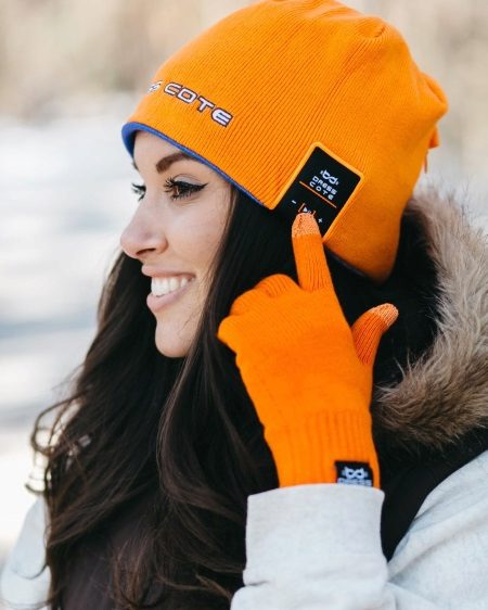 The cap has built-in speakers at the ear level, a small microphone and several buttons to control the headset. Your hands will always be warm, and will also be free to perform any kind of action.