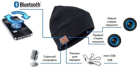 A hat with built-in bluetooth headphones is a great solution for the winter season. This accessory is at the peak of popularity among young people today. The cap has specially mounted headphones, so to use the phones there is no need to get it out of your pocket or bag. Hands will always stay warm. In such a hat you can listen to music anywhere and in any weather, as well as talk on the phone.