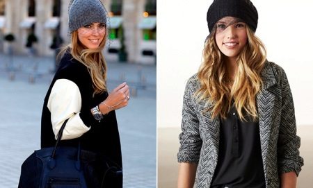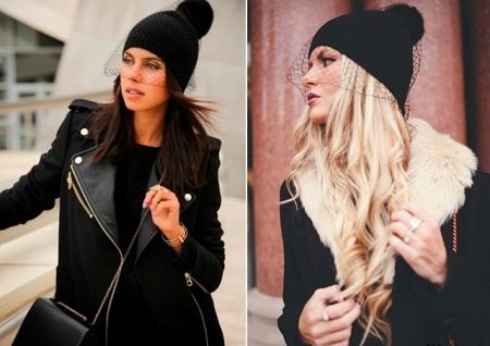 Caps with a pompom and a veil, at first glance, a combination of incongruous. In fact, a beautiful bow, whether it be a coat with a fur collar or an elongated coat. In any case, this is an urban casual image for an active girl who is in a hurry to work, study or just slowly walks around the city.