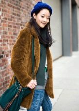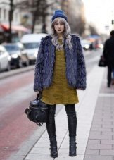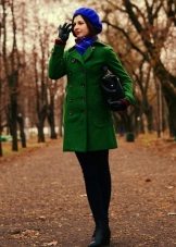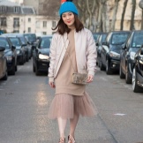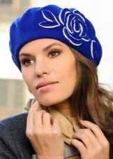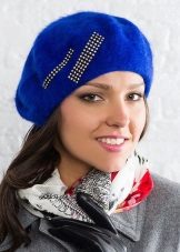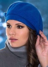 For lovers of classics, a knitted beret of blue color will be a great choice. It is worth giving preference to smooth models without the use of volumetric patterns. The blue beret blends nicely with a coat and long gloves.