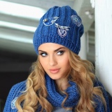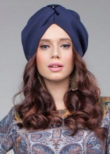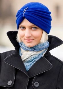 Many girls like knitted turbans. Blue models look beautiful on girls with delicate facial features. This hat is bright and original, so it does not require additional jewelry.