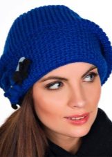 Classic hats are knitted. Designers in the new season created a huge range of blue hats made of yarn.
