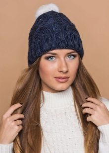 And, of course, you can not forget about the dark blue hats, which are practical. Very popular is the headdress of the color of sea waves. If you are tired of black, then a dark blue hat will be a great alternative. It can be combined with blue, black or gray outerwear. It can be an elegant coat, a modern jacket or a comfortable down jacket.