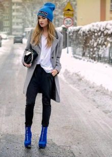 - For representatives of the color type, a blue hat is suitable for winter only if they like bright makeup. A great solution would be a blue headdress in tandem with gray outerwear.