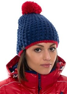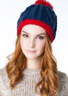 Red-blue hat is suitable for determined and bright girls. Usually this color scheme is used in a sports style. Knitted red-blue hat looks beautiful and original.