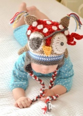 The assortment of hats with the image of owls is truly huge, which is a big plus, because each girl will be able to choose the right option. There are products with an open beak, large eyes, sleeping and with drooping ears in the form of tassels. Also pleasing is the color variety and the presence of interesting decorative elements - buttons and pompons. The knitting technique is also different.