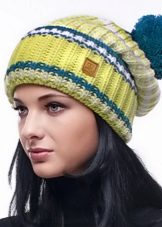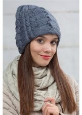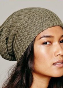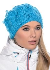 Knitted women's knitted hats deserves special attentioncreating a volumetric effect and suitable for almost everyone. Such models can be in the form of a cone with a large pompom on the top of the head, or with a lapel on the forehead, they can be in the form of a “sock”, or a long hat placed in a fancy way on the head.